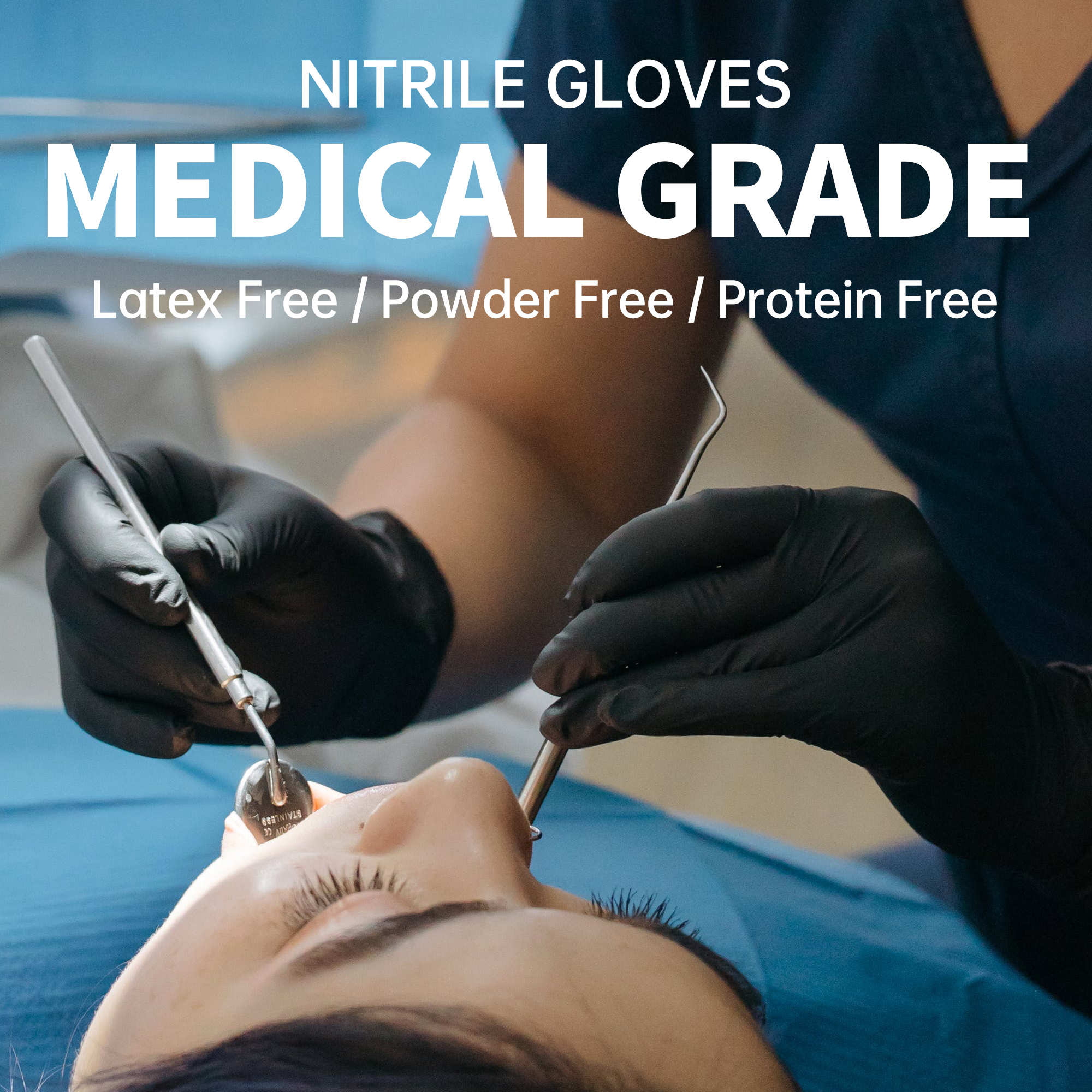 SUP. Nitrile Gloves, Disposable Medical Exam Gloves, Powder Free Latex Free, Black, Box of 100 pcs