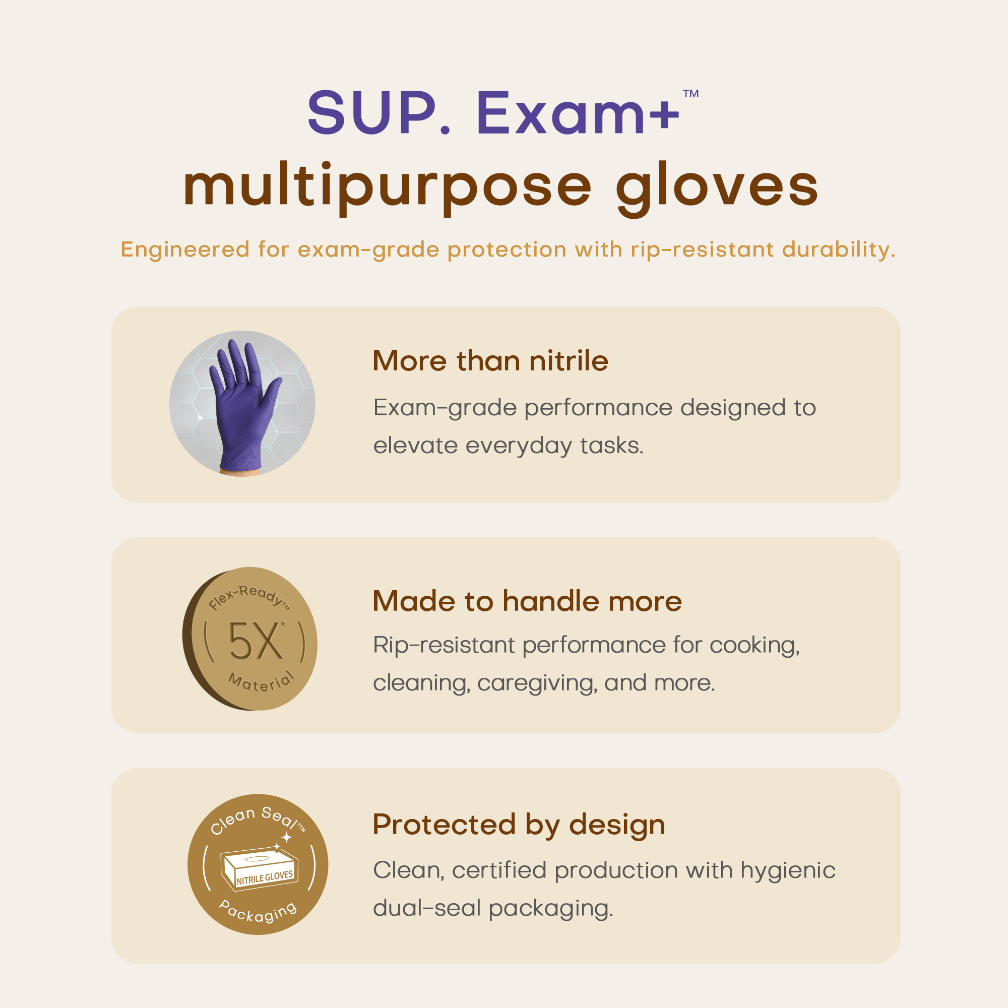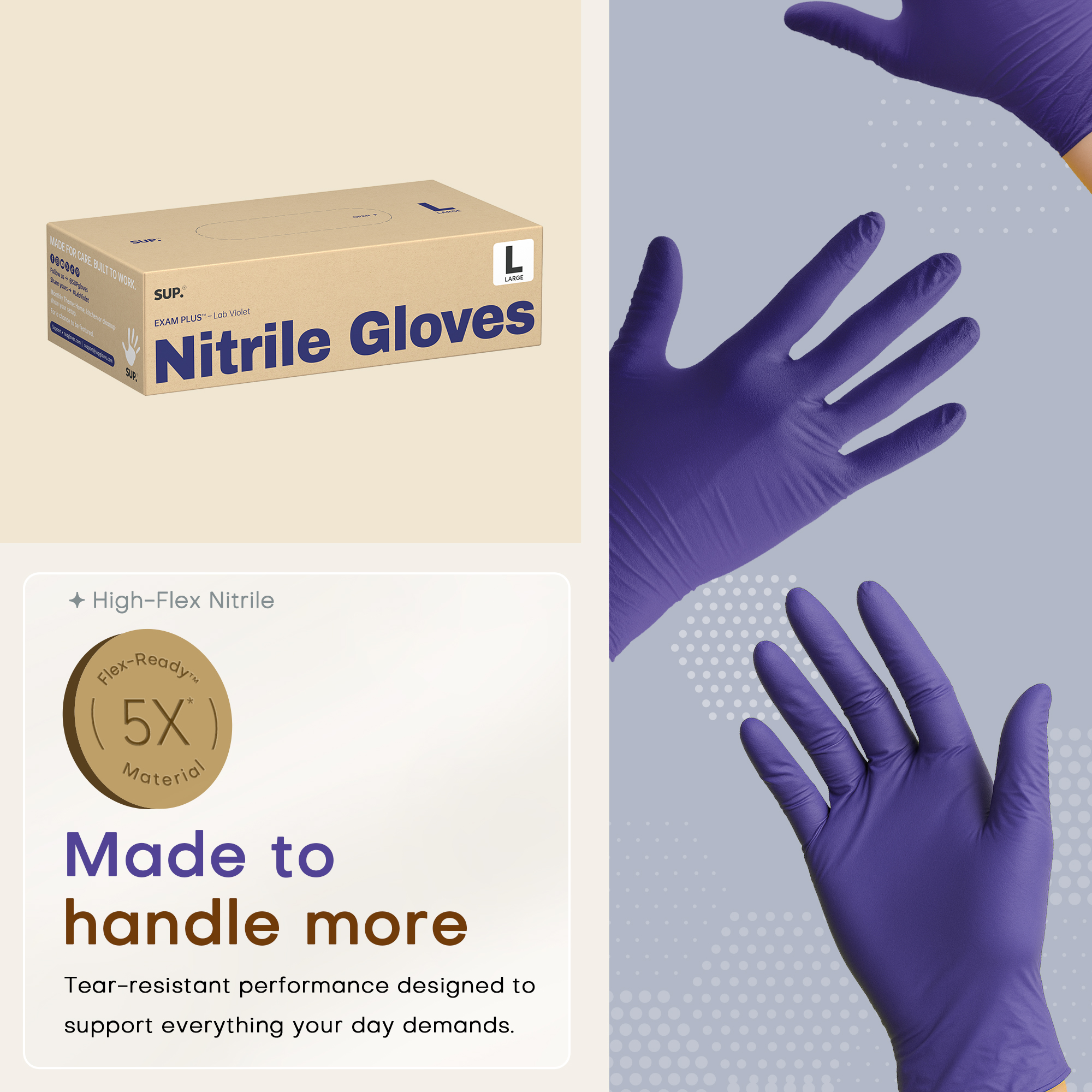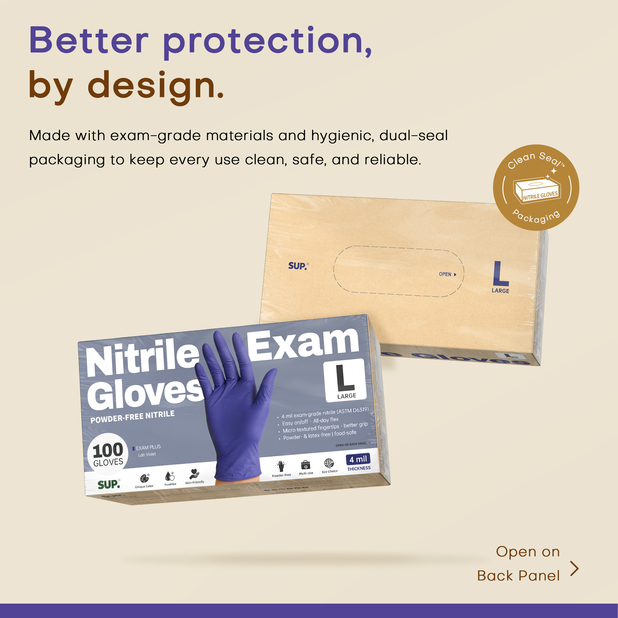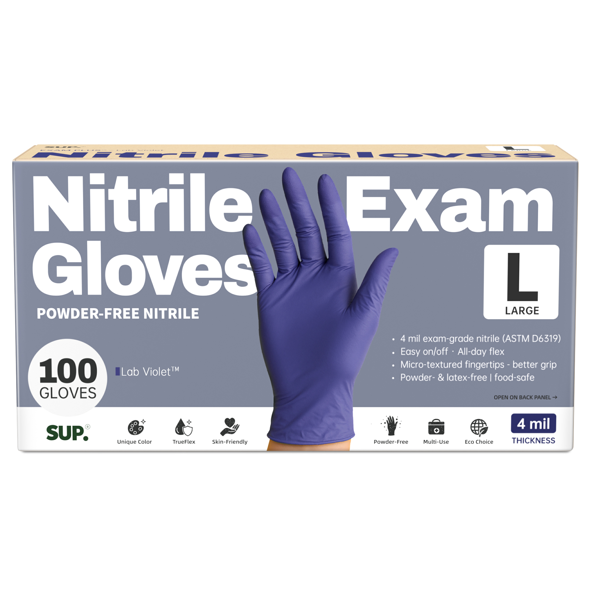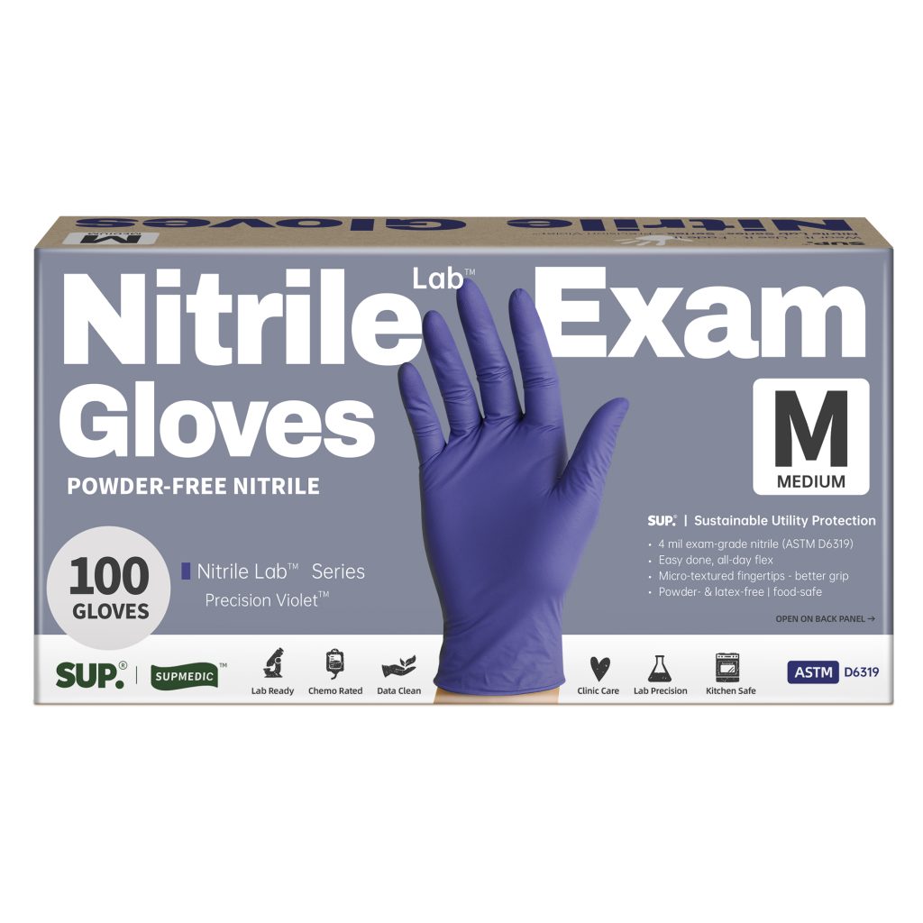 SUP® Lab Violet™ Examination Nitrile Gloves, Powder Free Medical Disposable Gloves, Box of 100 pcs