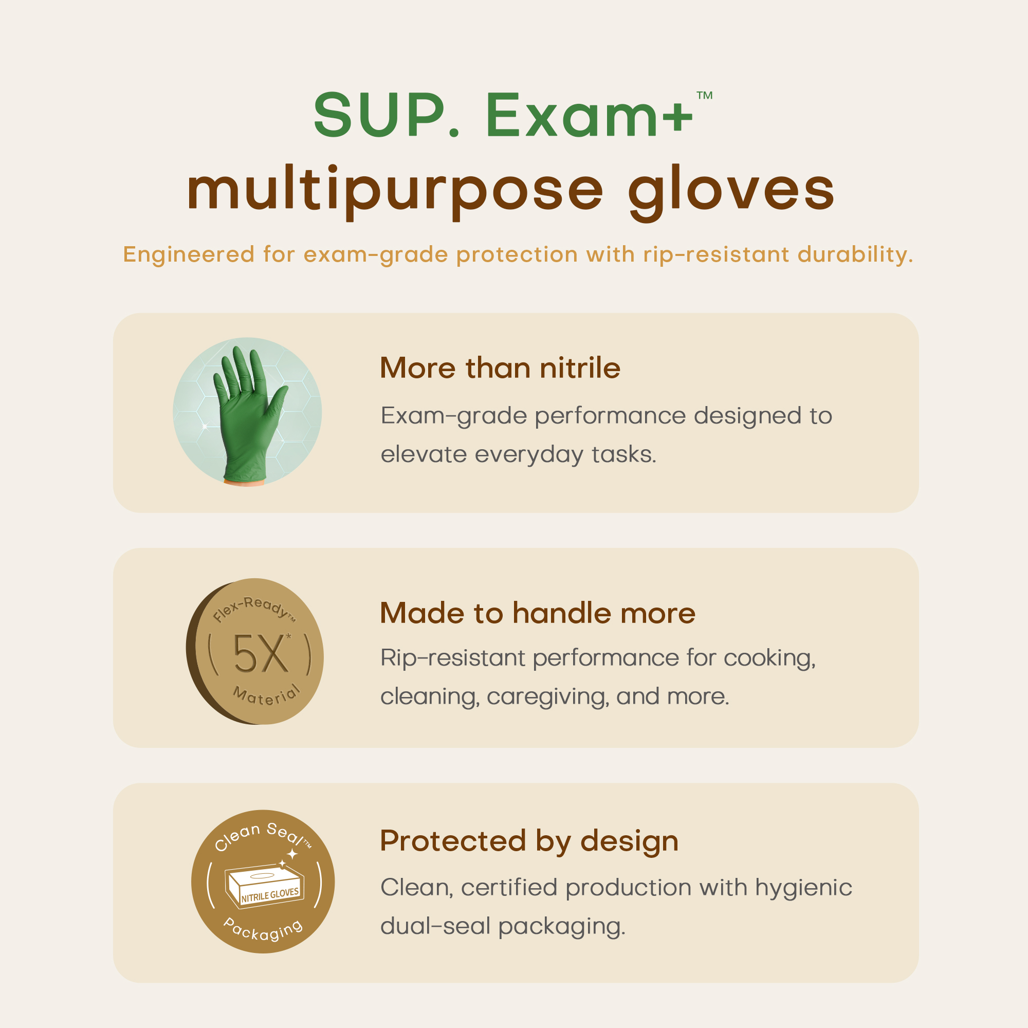 SUP Moss Green™ Examination Nitrile Gloves, Powder Free Medical Disposable Gloves, Box of 100 pcs