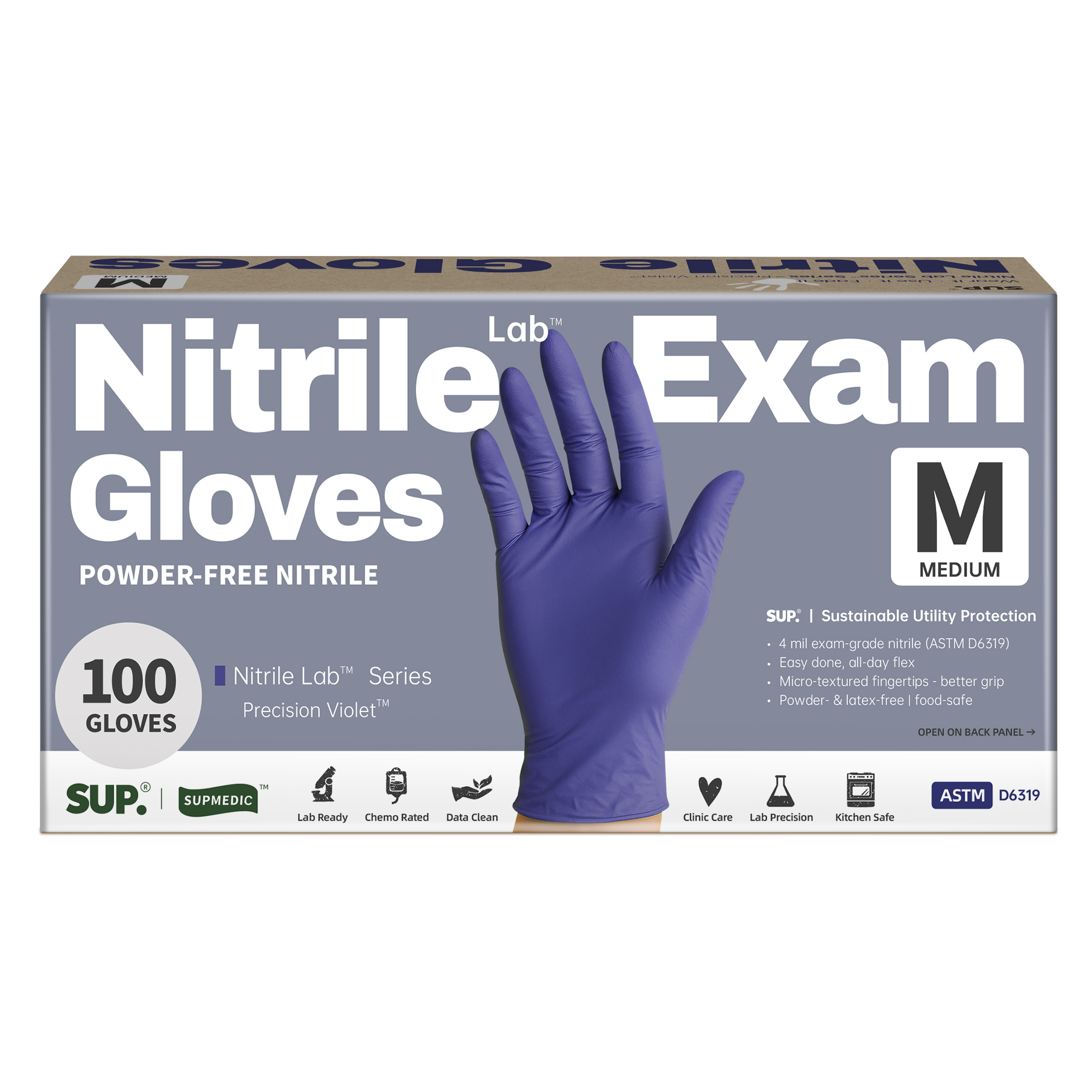 Sup. Nitrile Lab™ Examination Gloves, Powder Free Medical Disposable Gloves, Violet Blue, Box of 100 pcs