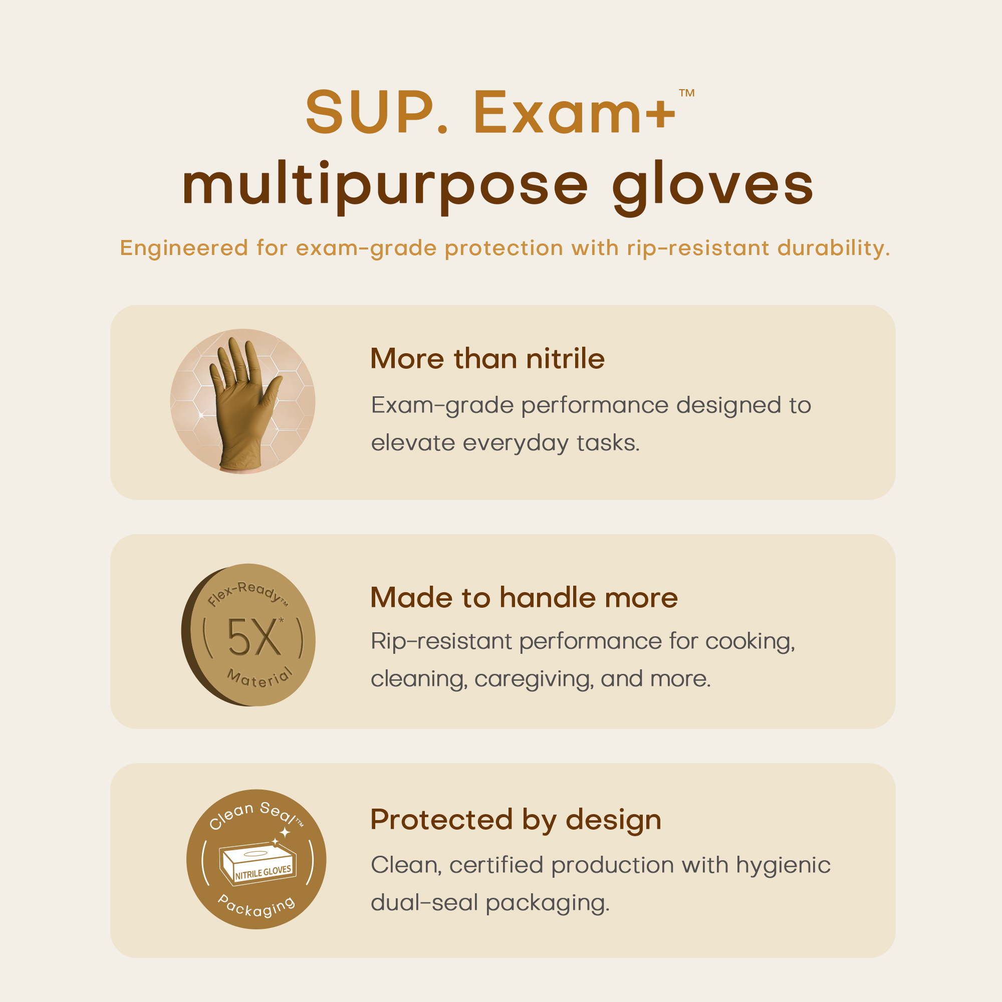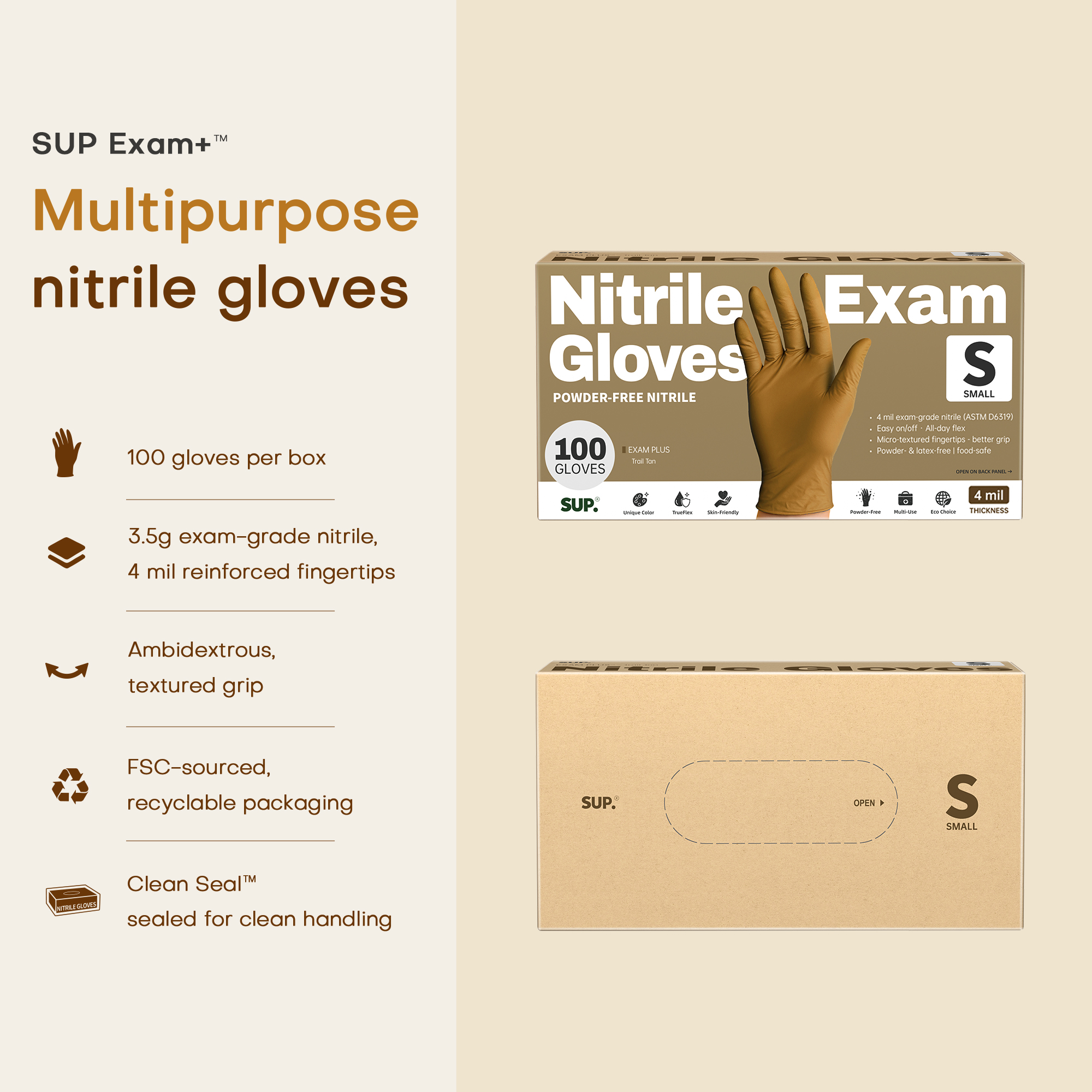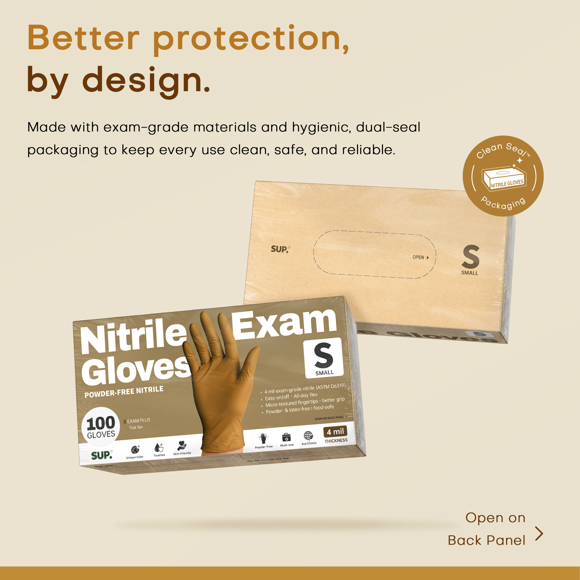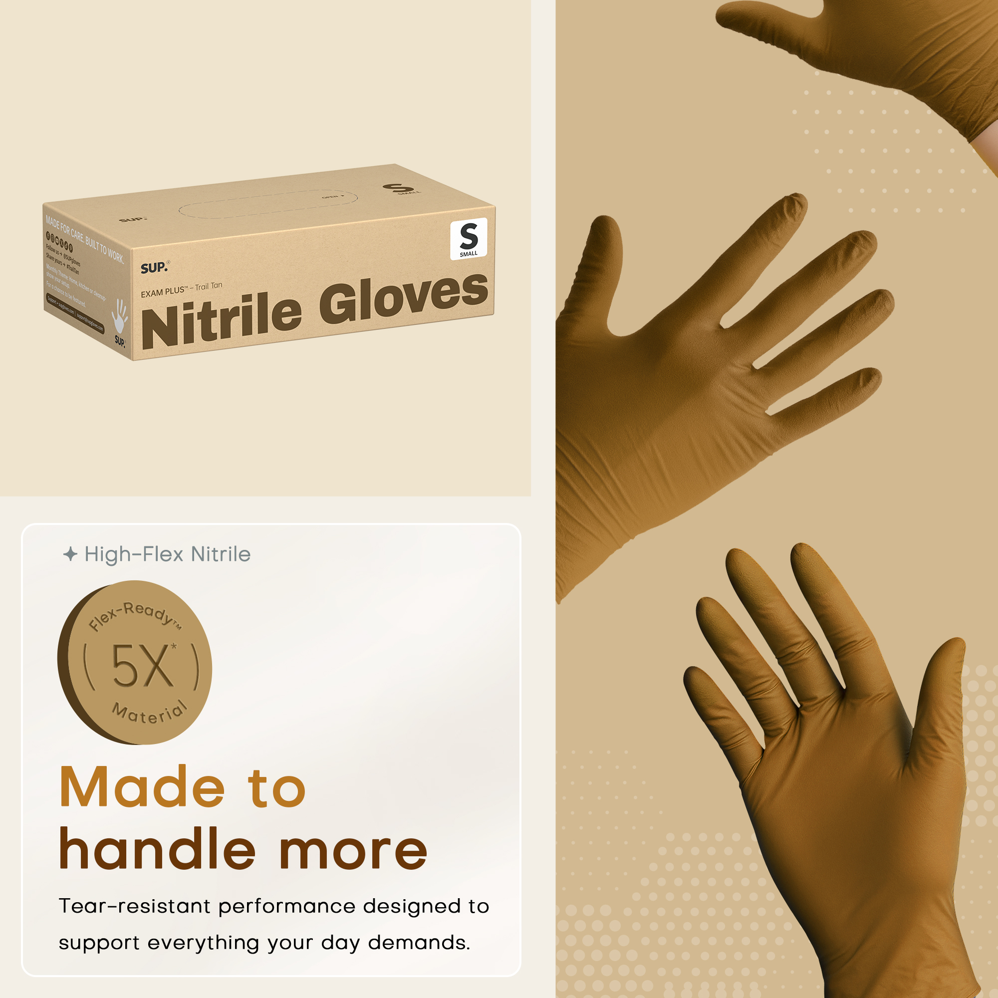 SUP® Tan Nitrile™ Examination Nitrile Gloves, Powder Free Medical Disposable Gloves, Trail Tan, Box of 100 pcs