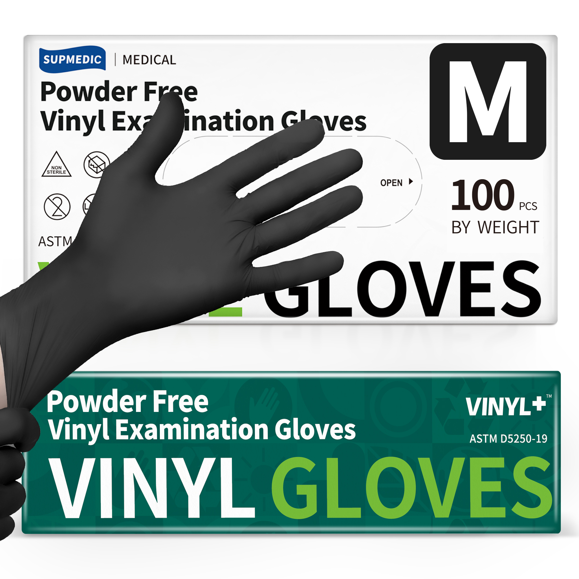 Supmedic Vinyl Disposable Exam Gloves, Black 4 Mil Powder-Free Latex-Free Medical Food-Safe Cooking Cleaning Glove, 100 Pcs (Medium)
